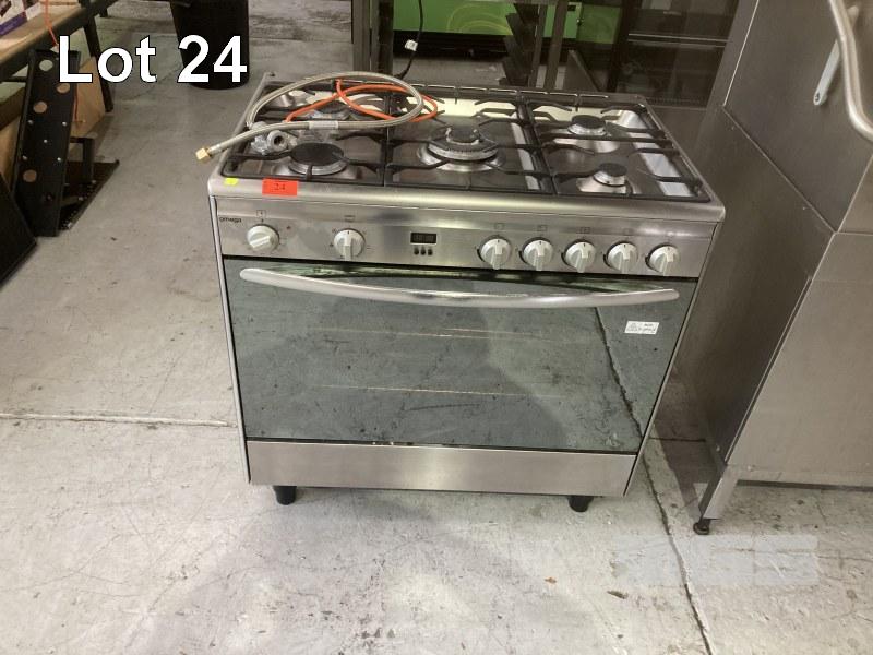 5 BURNER OVEN RANGE, OMEAGA STAINLESS STEEL CASED, GAS