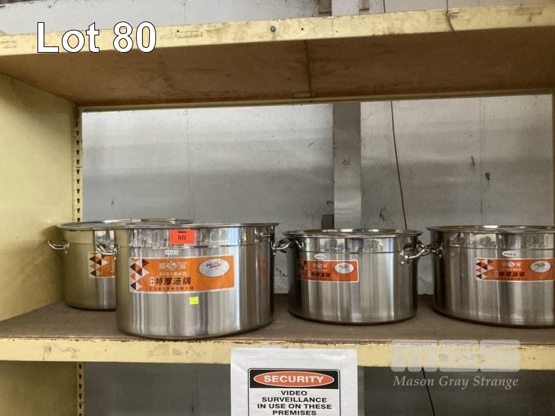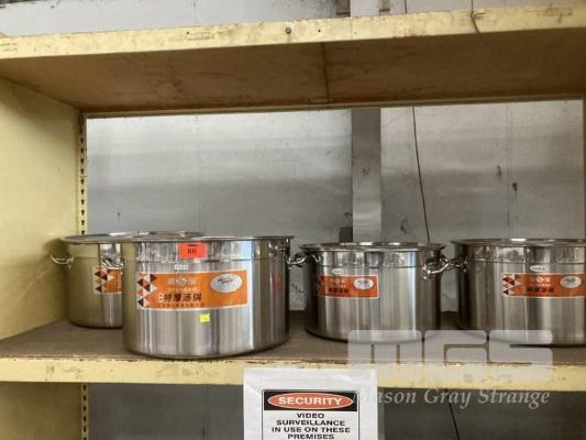 4 x STAINLESS STEEL STOCK POTS, 40 & 45cm