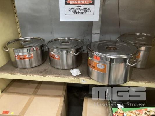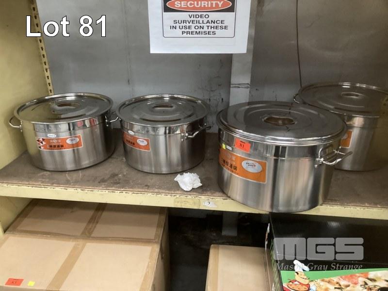 4 x STAINLESS STEEL STOCK POTS, 40 & 45cm