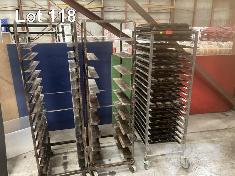 3 ASST BAKERS TROLLEYS & QTY ASST PIE TINS