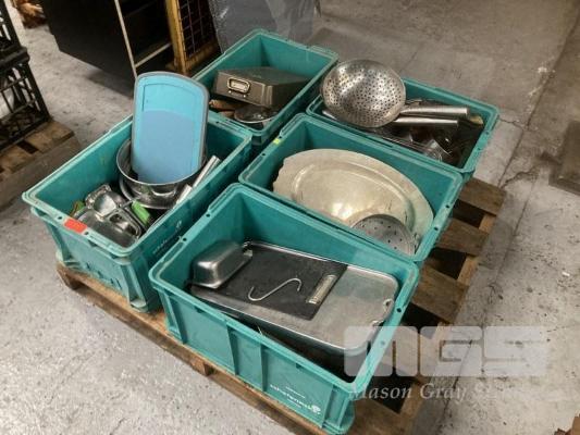 FRY PANS, WOK PANS, STOCKPOTS, KITCHENWARE, ETC, 5 x TUBS