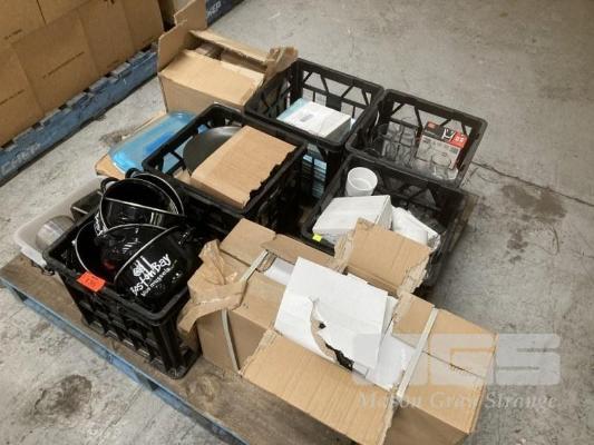 ASSORTED GLASSWARE, CROCKERY, MUSSEL POTS, ETC