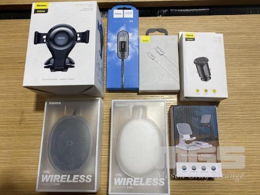 BASEUS CAR MOUNT HOLDER, CAR CHARGER, USB TO USB-C CABLES (1m & 2m), DESK PHONE HOLDER & 2 x BASEUS JELLY 15W WIRELESS CHARGERS (BS-W510)