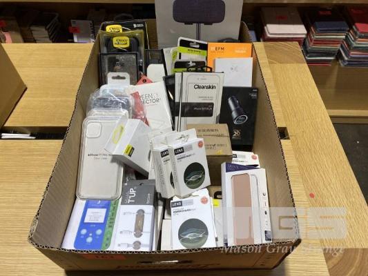 QTY ASST PHONE ACCESSORIES, CASES, SCREEN PROTECTORS, CAR CHARGER, ETC