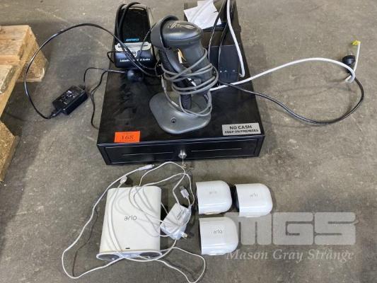 POS CASH DRAWER, BARCODE SCANNER, EPSON DOCKET PRINTER, DYMO LABEL PRINTER, ARLO CAMERA SYSTEM (INCOMPLETE)