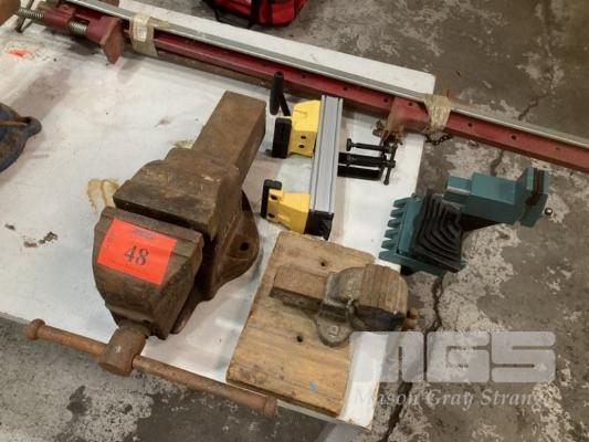 3 x ASSORTED VICES & 2 x SASH CLAMPS