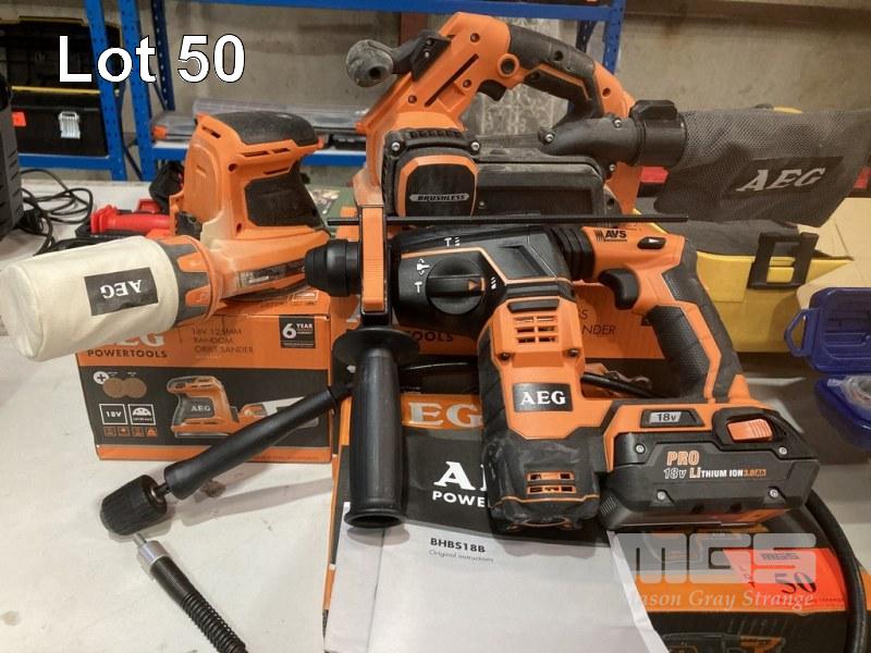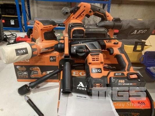 CORDLESS ROTARY HAMMER, ORBIT SANDER & BELT SANDER, AEG, 18V 1 x BATTERY, NO CHARGER