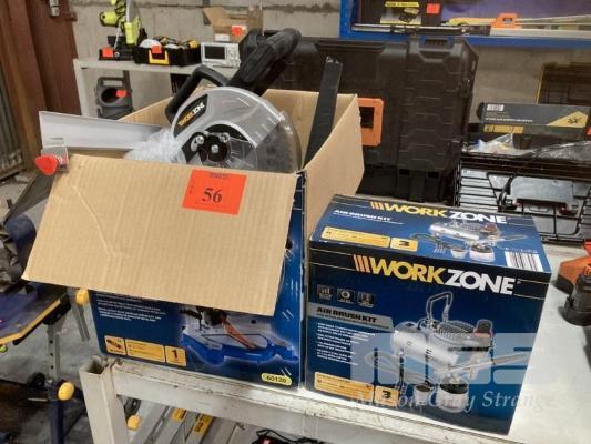 MITRE SAW, 8" & AIR BRUSH KIT, WORKZONE