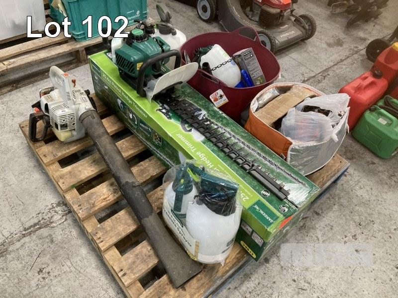PETROL BLOWER & HEDGE TRIMMER, PRESSURE SPRAYERS, GARDEN TOOLS, ETC