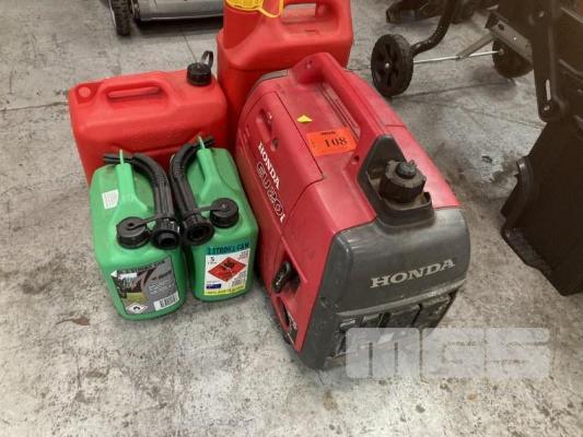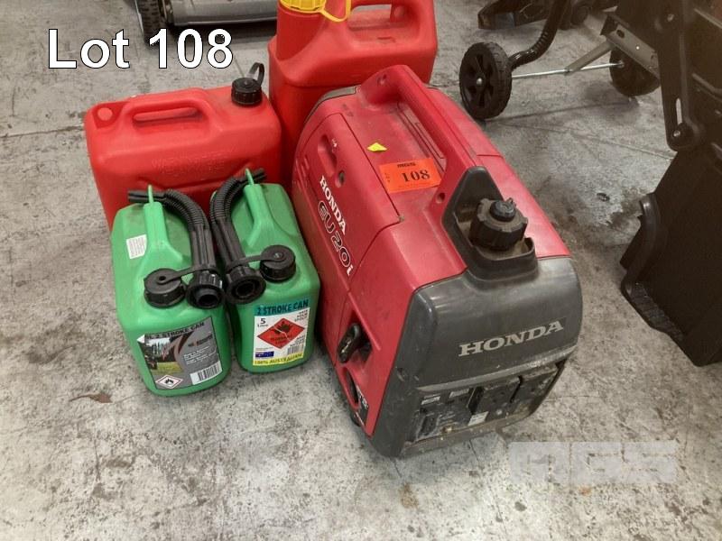 PORTABLE GENERATOR, HONDA EU20 INVERTER, PETROL & 4 x JERRY CANS