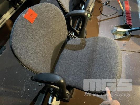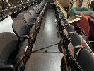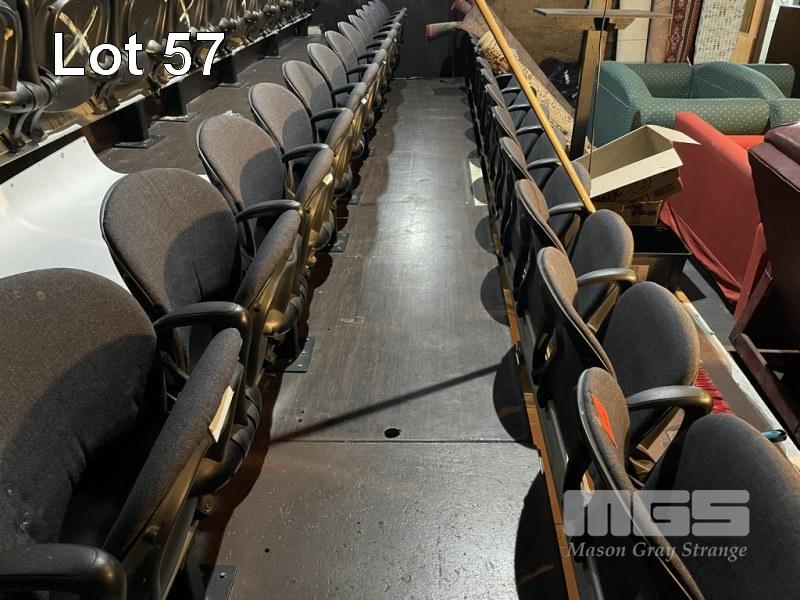 2 x ROWS THEATRE SEATING, EACH 13 SEATS, FOLDING BASE GREY FABRIC UPHOLSTERED ON ALUMINIUM BACKING