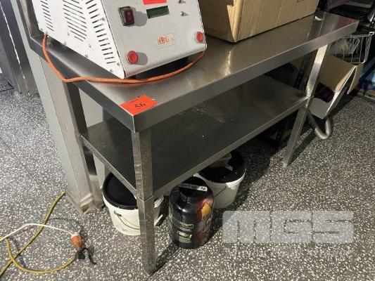 STAINLESS STEEL PREP BENCH, 2 TIER WITH SPLASHBACK, 120 x 60cm