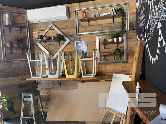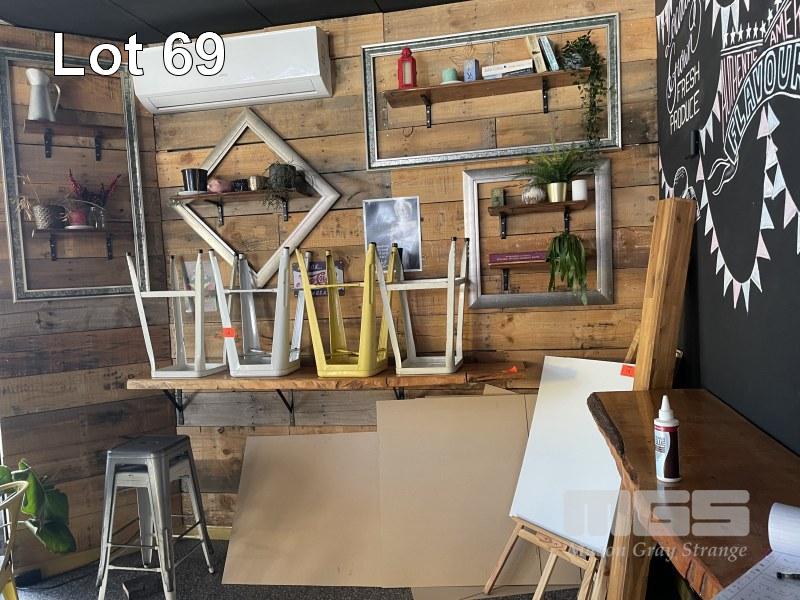 2 x SLAB TIMBER BAR SHELVES, PICTURE FRAMES & WALL MOUNT SHELVES