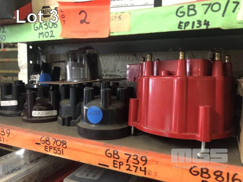 ASSORTED DISTRIBUTOR CAPS, UNBOXED, 18 PIECES, CONTENTS OF 1 SHELF