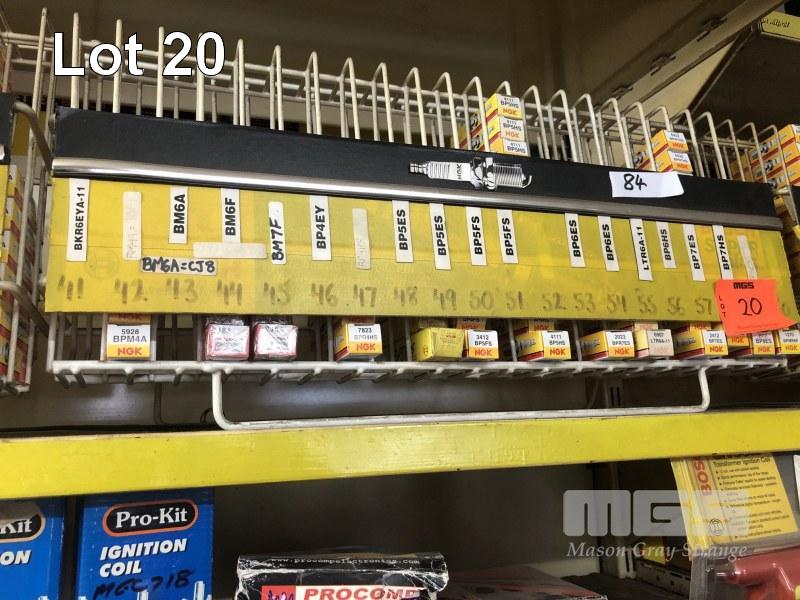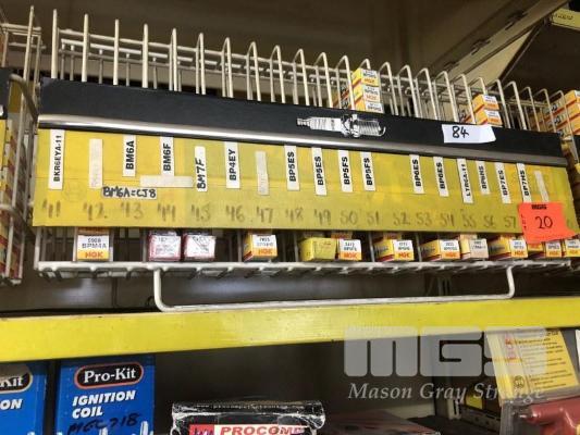 SPARK PLUG RACK & CONTENTS, 84 x MGK SPARK PLUGS