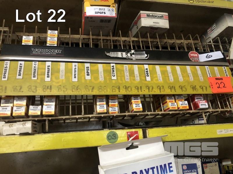 SPARK PLUG RACK & CONTENTS, 40 x MGK SPARK PLUGS