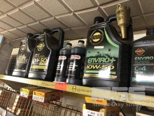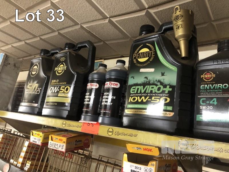 ASSORTED ENGINE OILS & TREATMENTS, 5L PENRITE SIN25 SAE 24-60, 5L PENRITE OW-50 SIN0 FULL SYNTHETIC, 5L PENRITE ENVIRO PLUS ADVANCED SYNTHETIC 10W-50, 2 x 1L PETRO TECH 2000 ENGINE TREATMENT, 1L PENRITE FULL SYNTHETIC 5W-30 C4 OIL