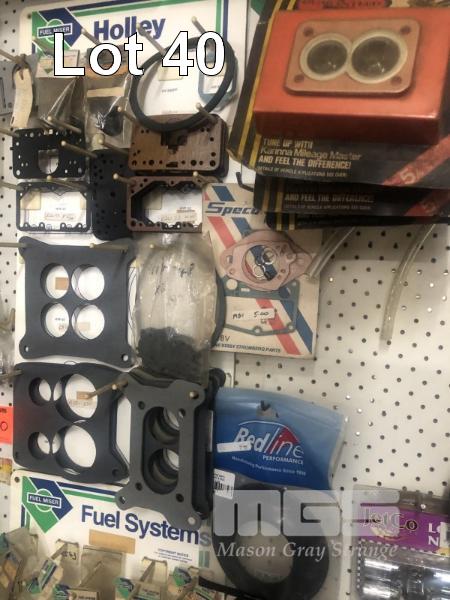 CONTENTS OF SHADOW BOARD, ASSORTED CARBY GASKETS, SUIT HOLLEY, ROCHESTER, NEEDLES & SEATS, PUMP PLUNGES, SUNKEN GASKETS, 2 & 4 BBL