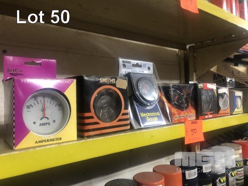 8 x AUTOMOTIVE GAUGES, AMP, OIL PRESSURE, VOLT METER, WATER TEMP ETC.