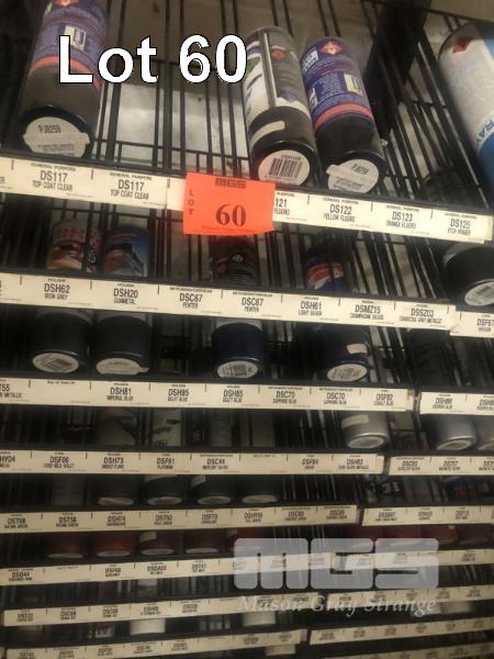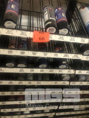 RACK & CONTENTS, ASSORTED DUPLI COLOUR TOUCH UP AEROSOL CANS, APPROX 24 x CANS