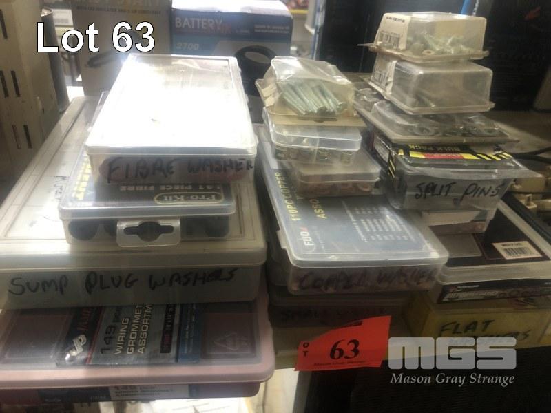 12 x GRAB KITS & ASSORTED PACKAGES, FIBRE WASHERS, SUMP PLUG WASHERS, COPPER WASHERS, FLAT WASHERS, SPLIT PINS, ASSORTED METAL THREADS & NUTS ETC.