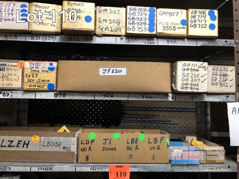 ASSORTED IGNITION, POINTS, ROTORS, DISTRIBUTOR CAPS, SPARK PLUG BOOTS, WATER PROOF RESISTOR COVERS