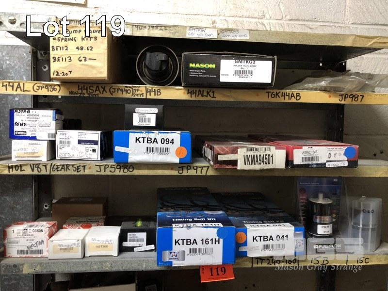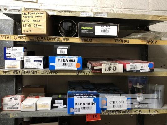 CONTENTS OF 3 x SHELVES, TIMING BELT KITS, SPARES