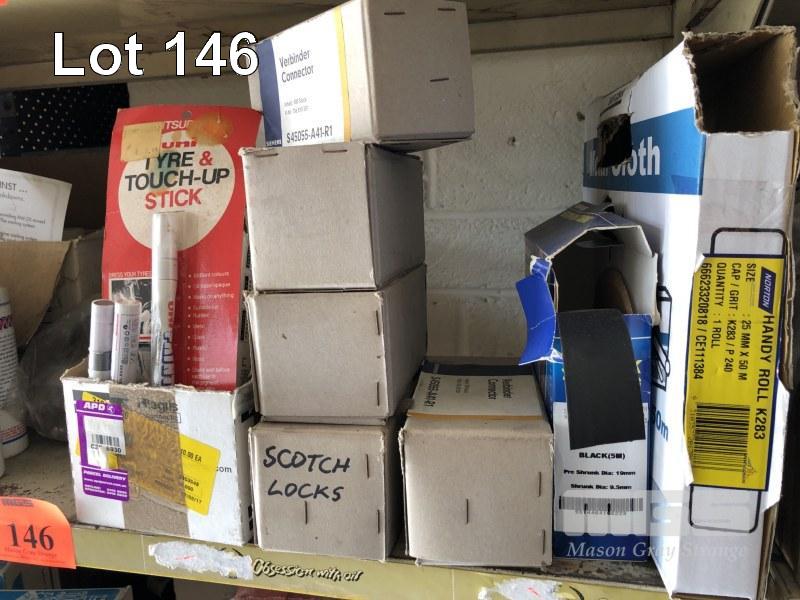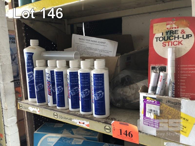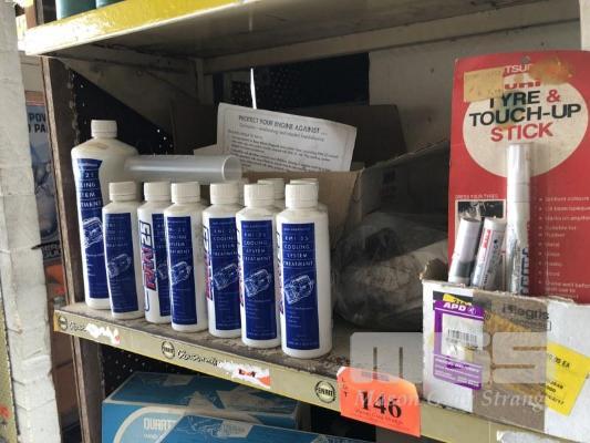 CONTENTS OF 1 SHELF, COOLING SYSTEM TREATMENT, TYRE TOUCH UP STICK, SHRINK TUBE, LUGS, TERMINALS, FUSES ETC.