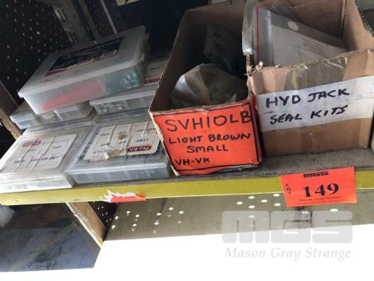 CONTENTS OF 1 x SHELF, 7 x GRAB KITS, FUSES, ASSORTED AUTOMOTIVE HARDWARE, GREASE PACKS ETC.