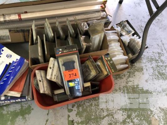 9 x LED FLURO TUBES, 13 x EXHAUST TIPS, REGISTRATION DISC HOLDERS, ASSORTED PARTS CATALOGS ETC.