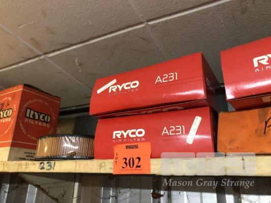 LARGE QUANTITY AIR FILTERS, CONTENTS OF TOP ROW, APPROX 40, RYCO, WESFIL ETC.