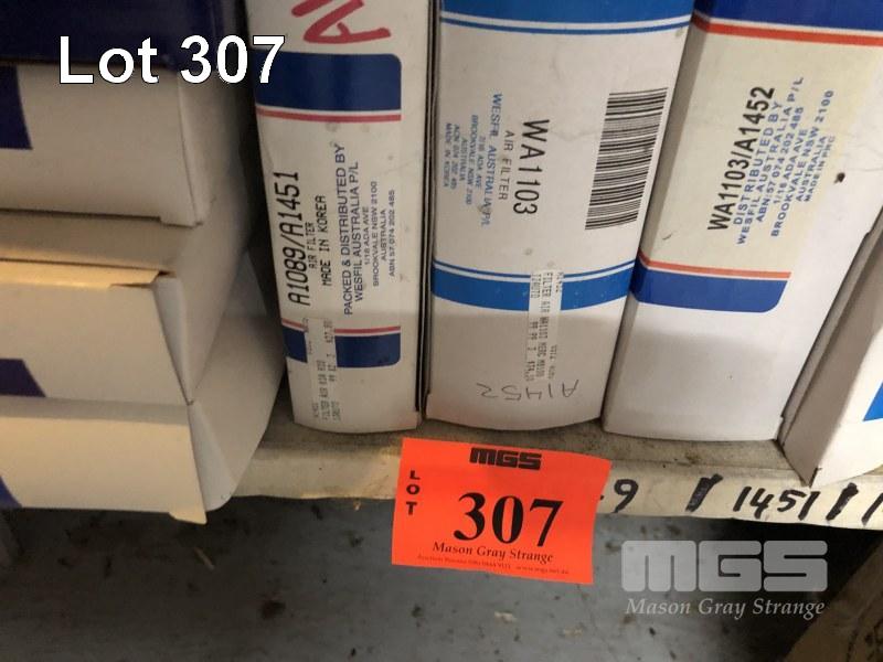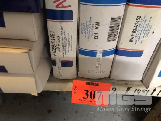 LARGE QUANTITY AIR FILTERS, CONTENTS OF ROW, APPROX 40, RYCO, WESFIL ETC.