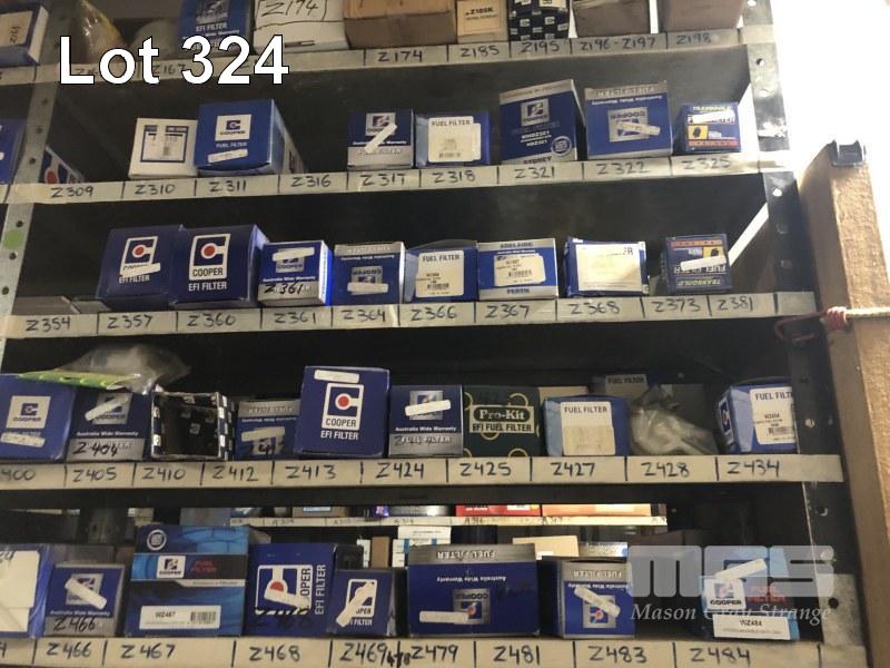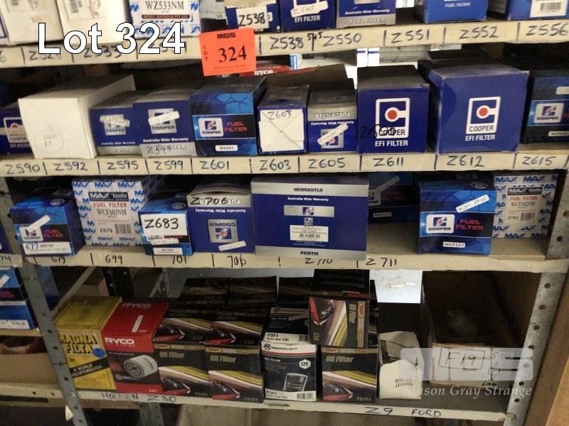 CONTENTS OF 8 x SHELVES, FUEL/OIL FILTERS