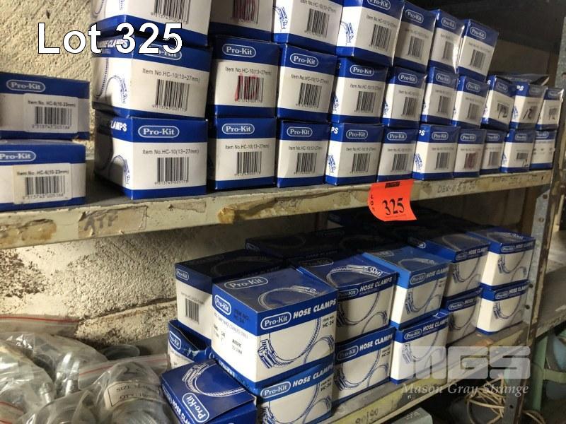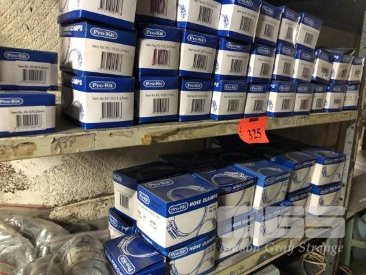 CONTENTS OF 3 x SHELVES, APPROX x 55 BOXES PRO KIT HOSE CLAMPS