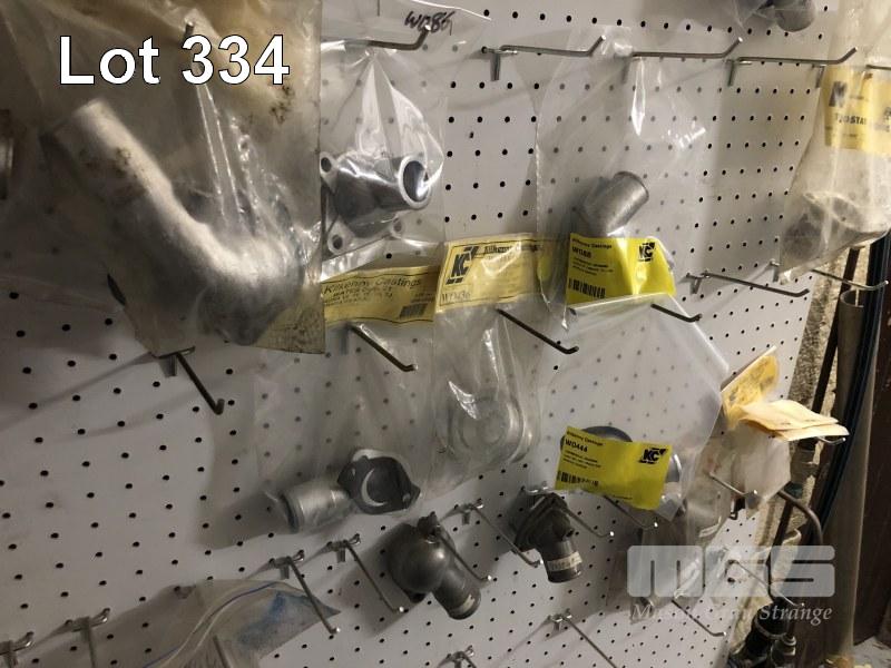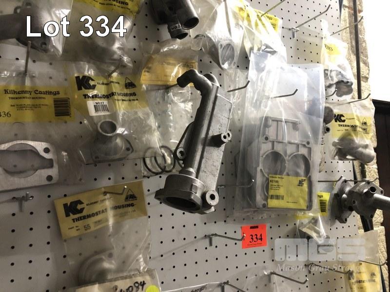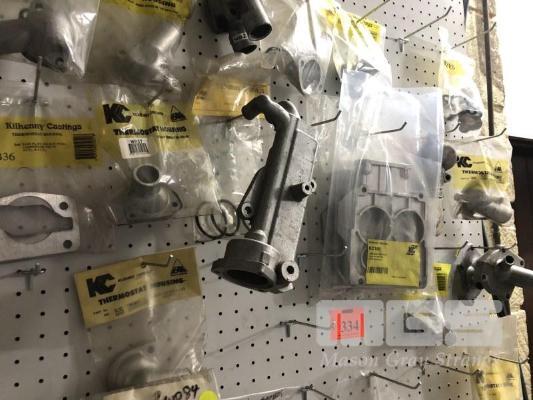 CONTENTS OF SHADOW BOARD, ASSORTED CAST ALLOY THERMOSTAT HOUSINGS