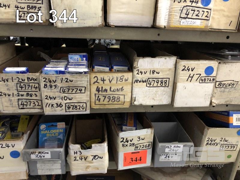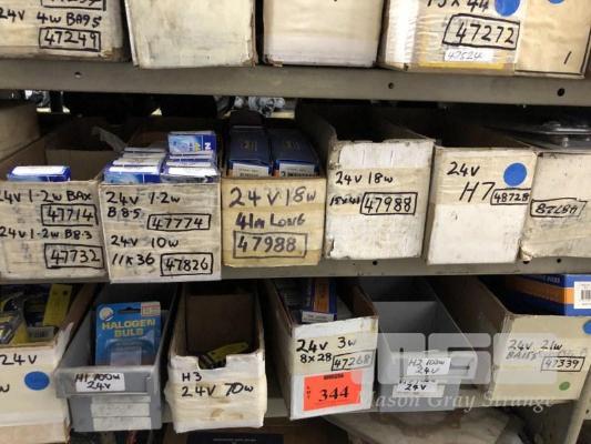 CONTENTS OF 5 SHELVES, LARGE QUANTITY BRAKE LIGHT & TAIL LIGHT GLOBES
