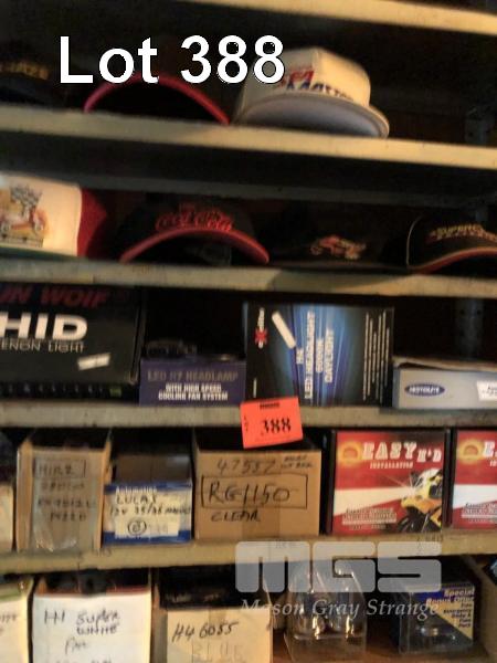 GALV RACK & CONTENTS, COLLECTABLE HATS, HID HEADLIGHTS, LED HEADLIGHTS, GLOBES, HB1/HB4/HB6/H2/H3/H9/H13 APPROX 300+
