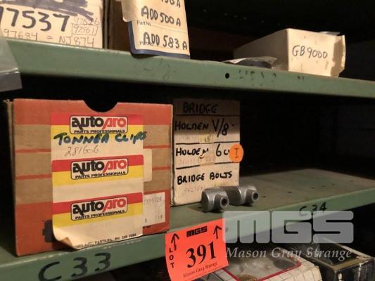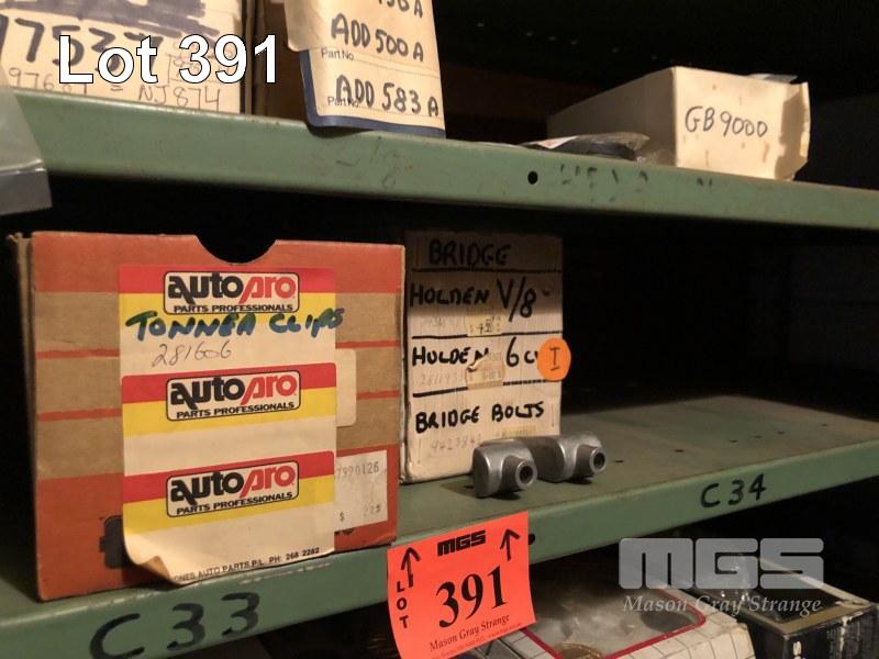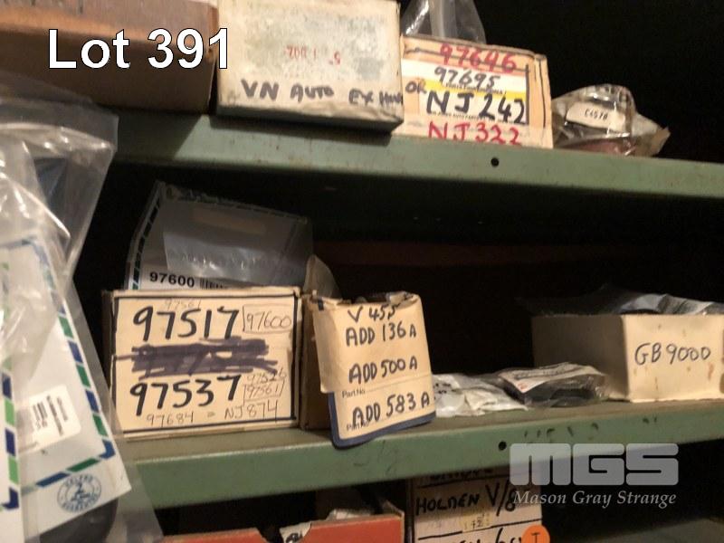 CONTENTS OF 6 SHELVES, LARGE QUANTITY OIL SEALS AS PER PART NUMBERS, TONNEAU CLIPS, 1 x ROCKER BRIDGE