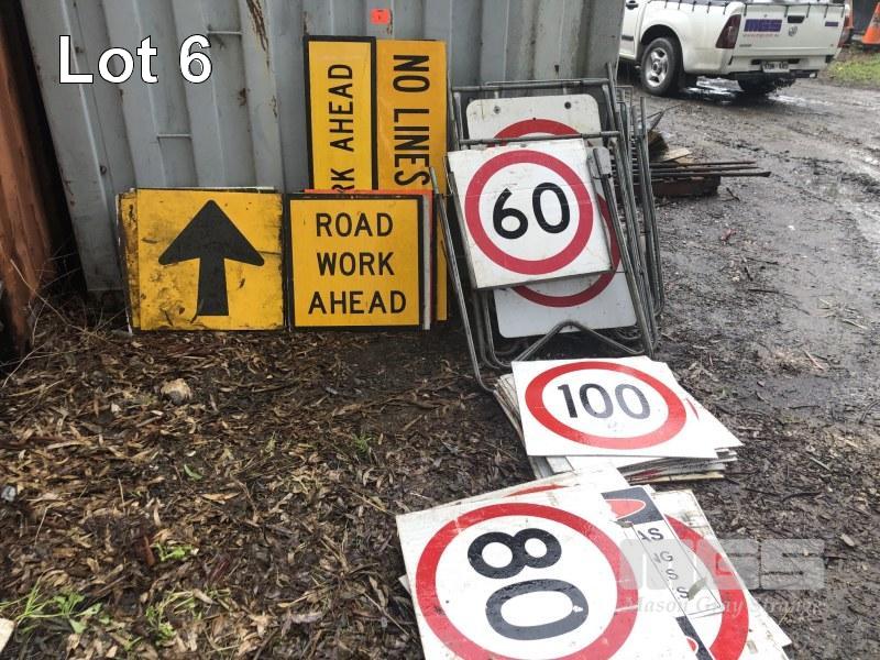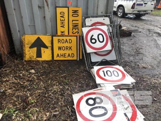 LARGE QUANTITY OF ROAD SIGNS, INLCUDING WORK AHEAD, NO LINES, ARROWS & SPEED ETC. 6 x STANDS