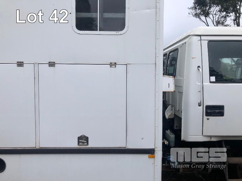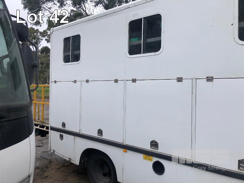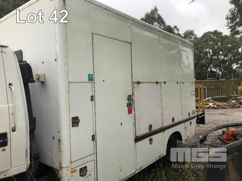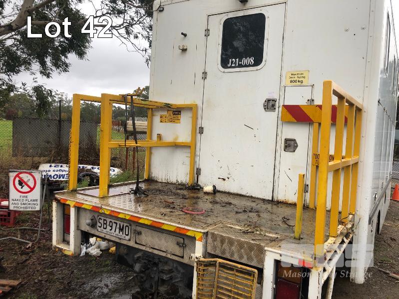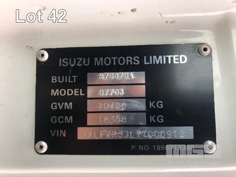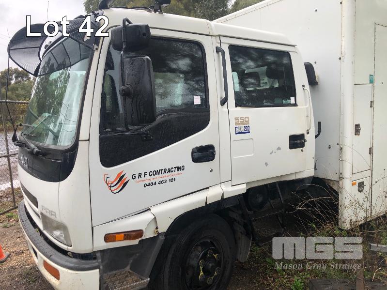 05 ISUZU 8FF03 DUAL CAB SERVICE TRUCK REG: SB97MO (SA) VIN: JALFRR33LY000912 ODO: 364,538 65L, 6 SPEED MANUAL (Y2A), 4 DOORS, 7 SEAT, FITTED WITH 6.2m TRAY, TRAILER AIR BRAKE SYSTEM, ENCLOSED SERVICE WORKSHOP, INCLUDES 10 x ACCESS HATCHES, 2 x ACCESS DOORS, REAR LANDING, INTENERAL WORKBENCH, RACKS & SHELVES, DUAL TRAILER COUPLINGS (WITH PAPERS, WITH 1 KEY/S, NO OWNER'S MANUAL, NO SERVICE BOOKS)