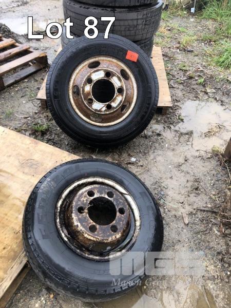 PAIR NON MATCHING 5 & 6 STUD TRUCK RIMS & TYRES, 205/85R16, 185R14C