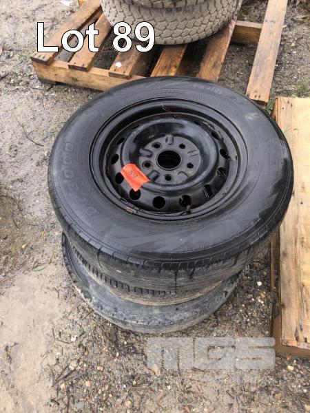 3 x 5 STUD RIMS & TYRES, 185/75R14 SUIT TRAILER SPARES