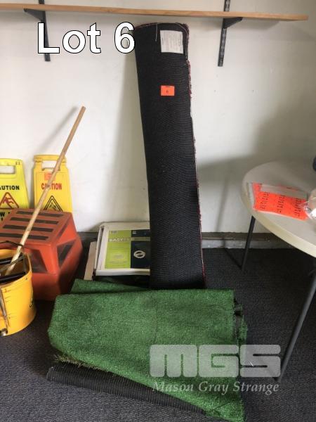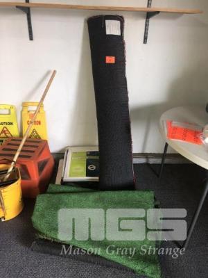 INDIAN RUG, APPROX 1800 x 1500mm, SYNTHETIC GRASS, NEW RUBBER TILES