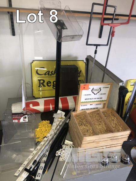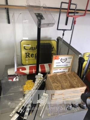 QUANTITY OF SHOP SIGN HOLDERS, PLASTIC CHAINS & 3 x WELCOME BELLS