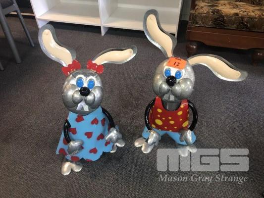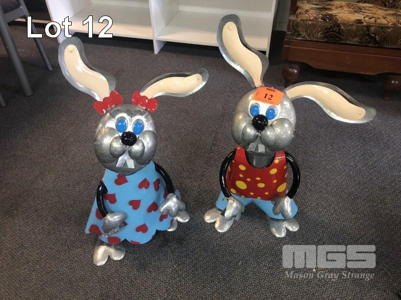PAIR OF METAL ORNAMENTAL RABBITS, APPROX 700mm (H)