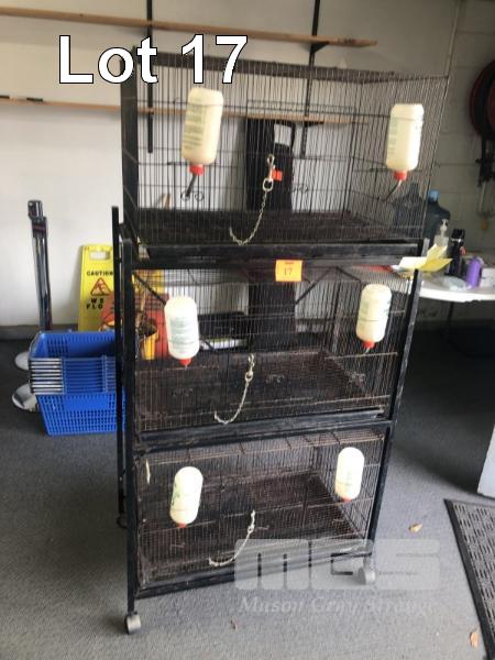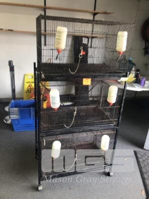 3 x MOBILE RAT CAGES ON MOBILE FRAME, WITH FEEDERS, 760 x 450mm CAGES