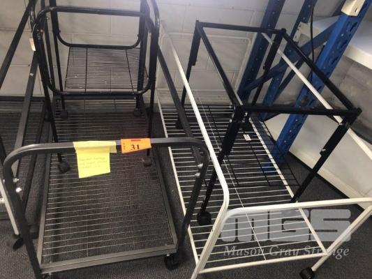 6 x BIRD CAGE TROLLEYS, NO CAGES, VARIOUS SIZES FROM 400 x 400mm TO 1100 x 500mm