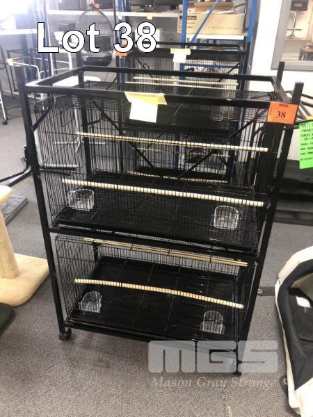 PAIR OF BIRD CAGES ON MOBILE STAND, 800 x 470 x 1200mm (H), MOBILE