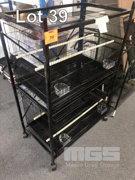 PAIR OF BIRD CAGES ON MOBILE STAND, 800 x 470 x 1200mm (H), MOBILE