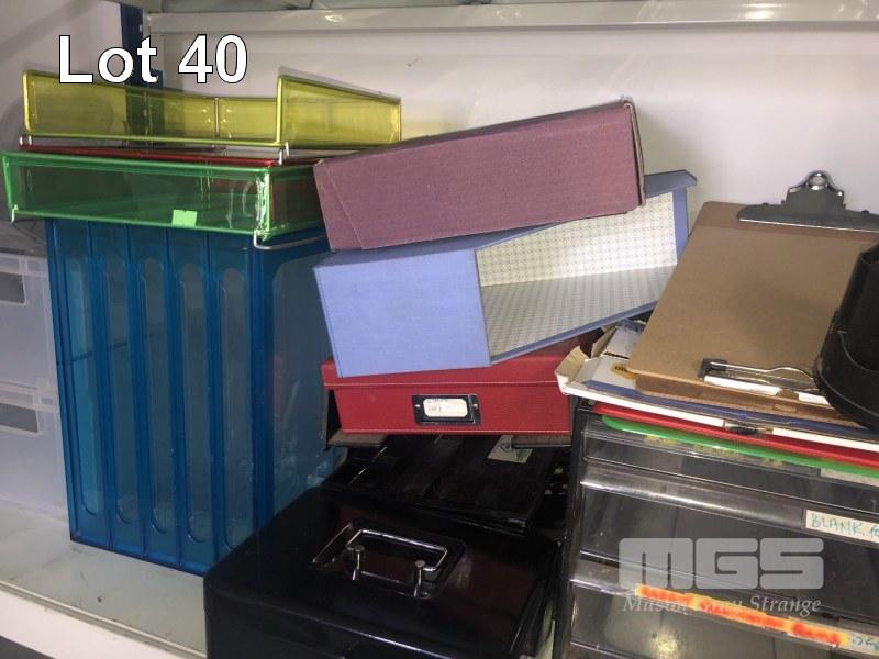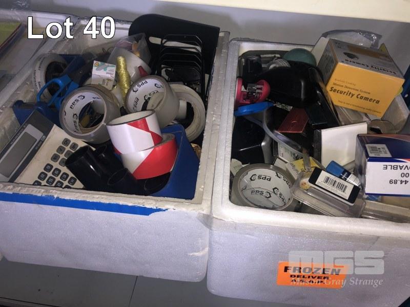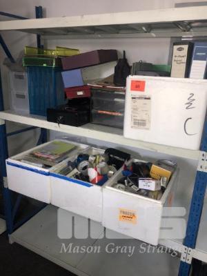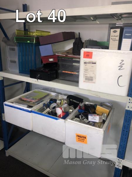 LARGE QUANTITY OFFICE STATIONARY, INCLUDING TAPES, PENS, STAPLERS, BINDERS, ETC.